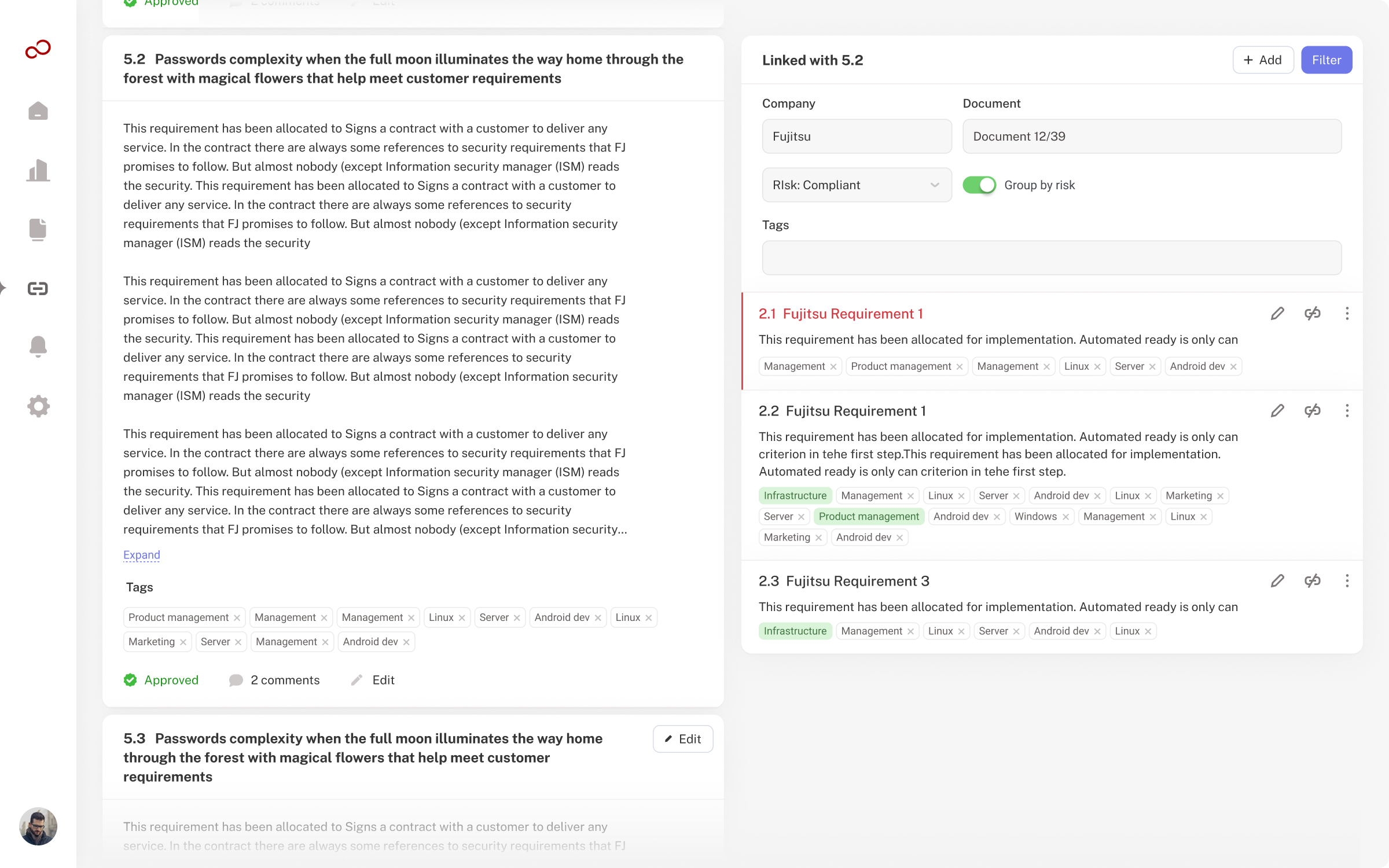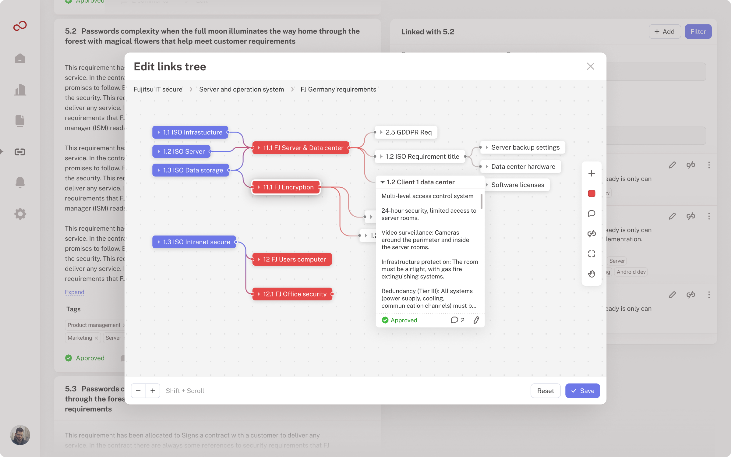 Для соотвествия стандартам и управления в рамкам структур с множеством дочерних компаний необходимо спроектировать софт управления требованиями