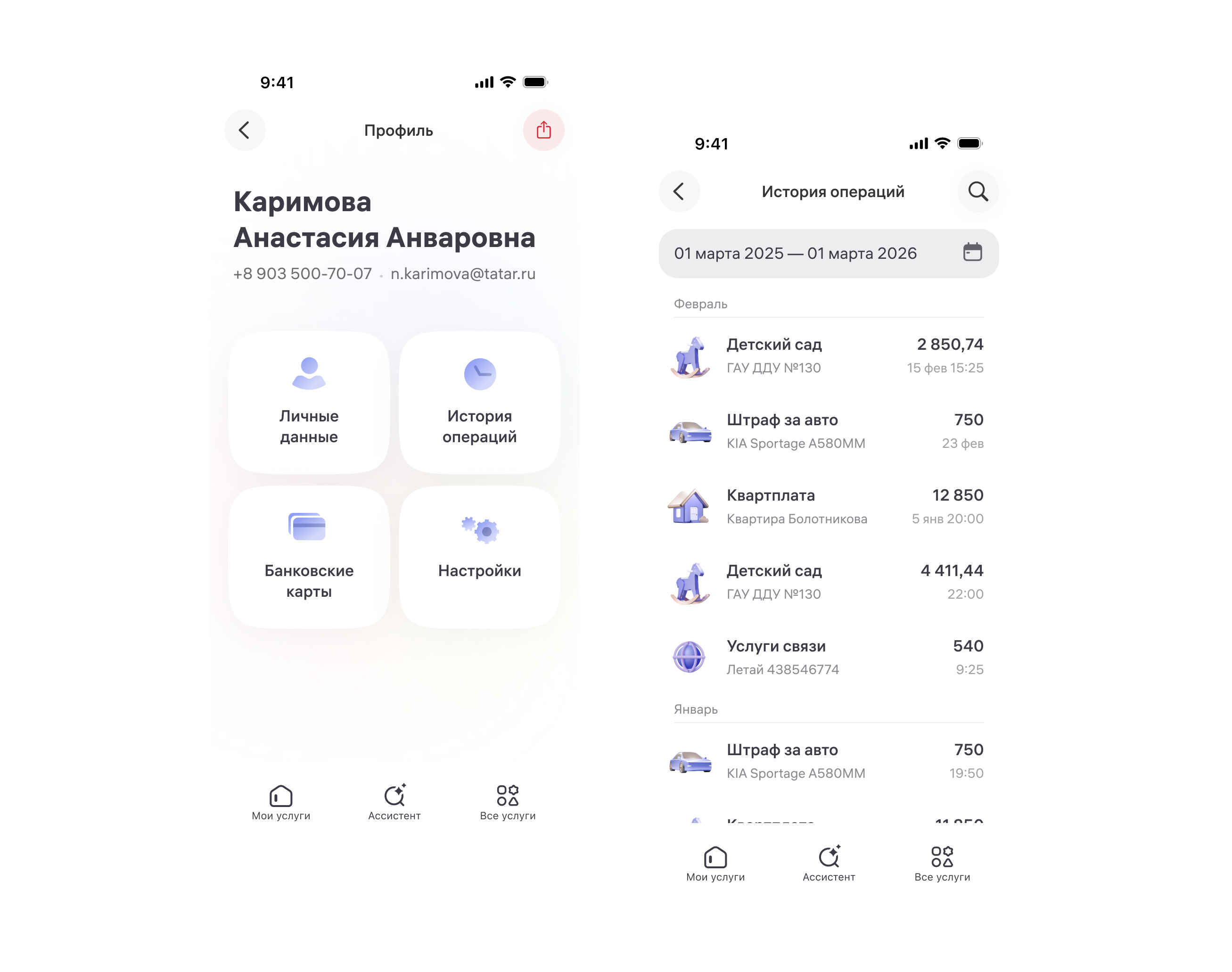 Огромный раздел с личными данными, историей платежей, картами и настройками