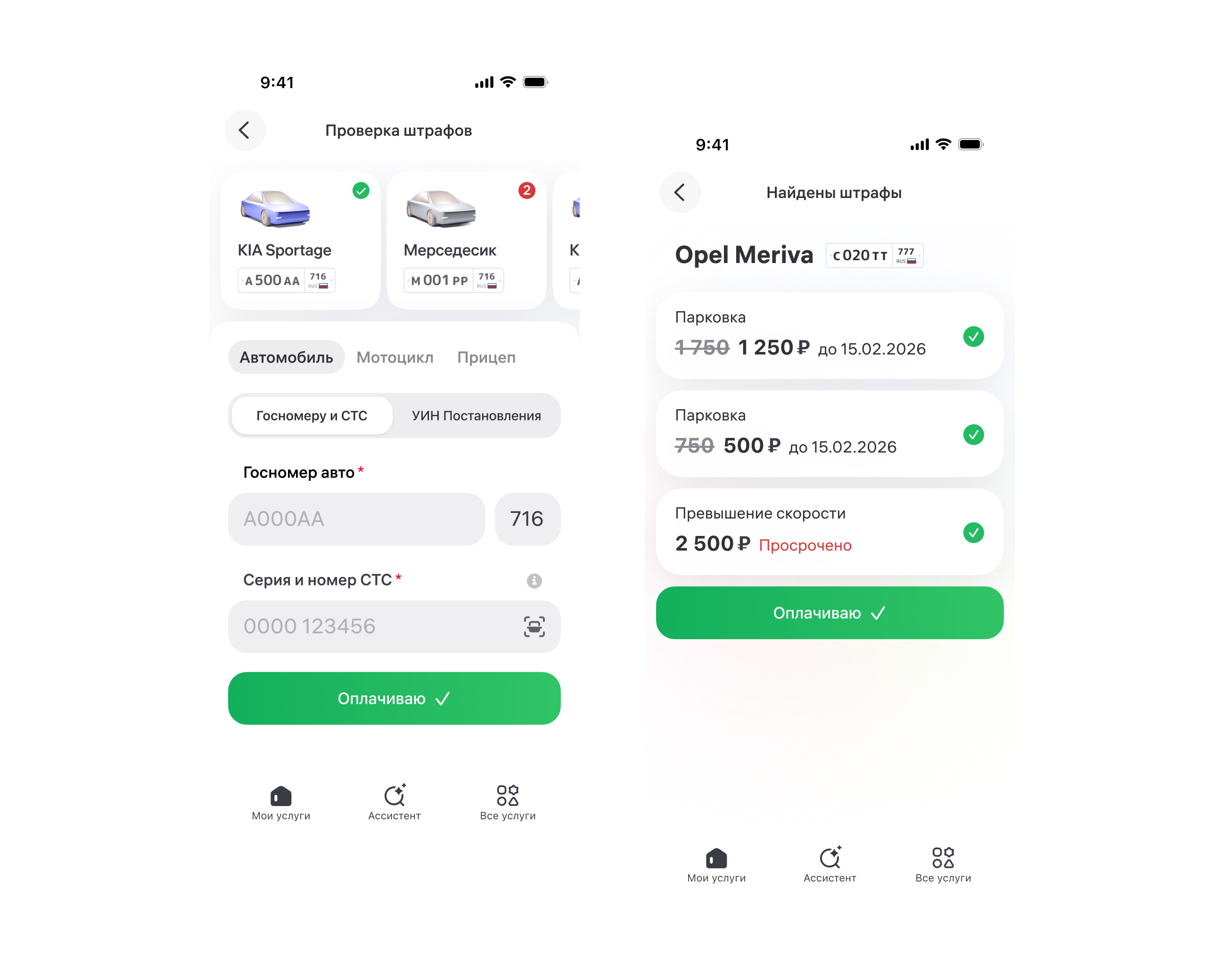Раздел Авто. Проверка штрафов, оплата, поиск авто на штрафстоянках