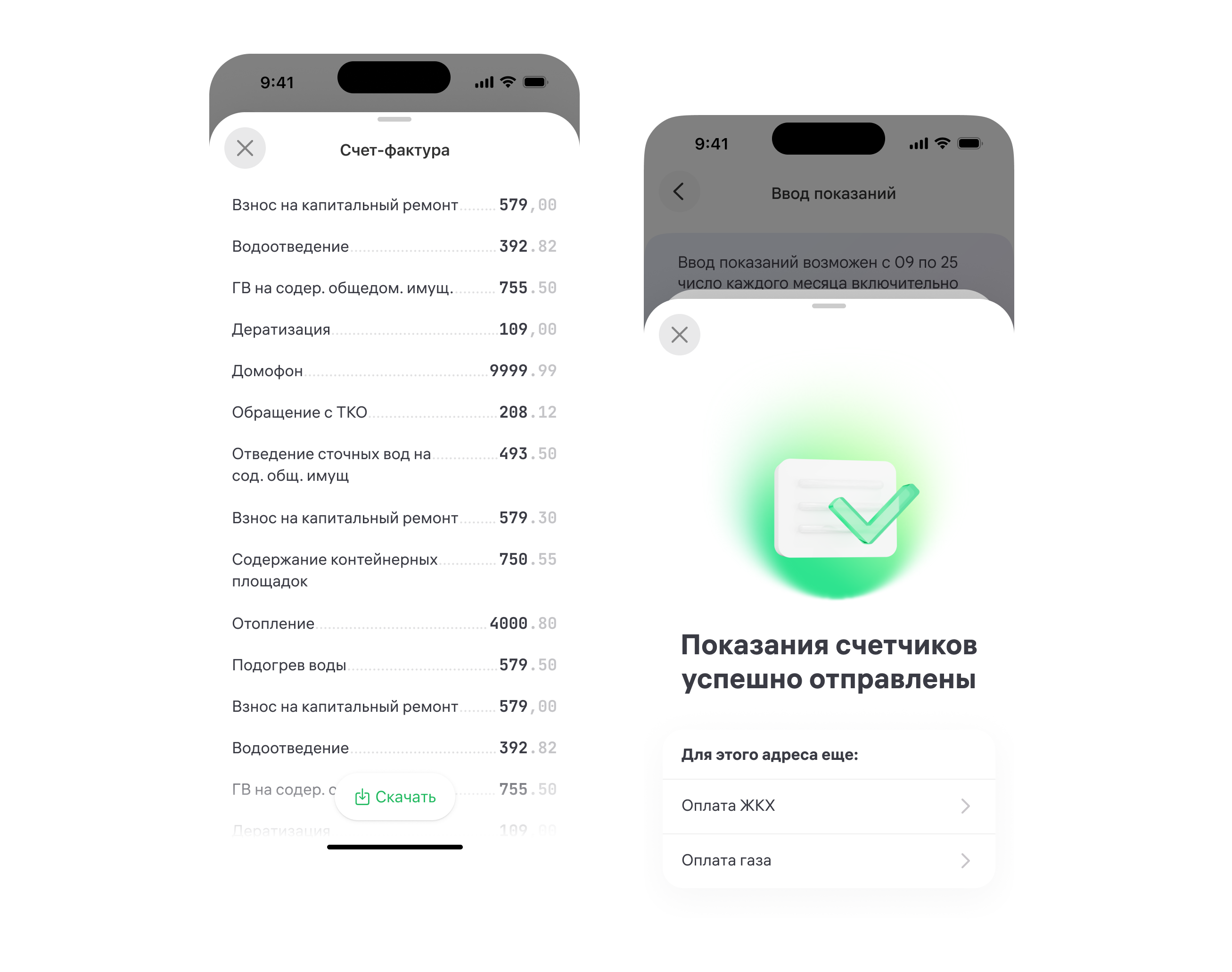 Раздел Дом. Ввод показаний счетчиков, оплата ЖКХ и газа, домовые чаты