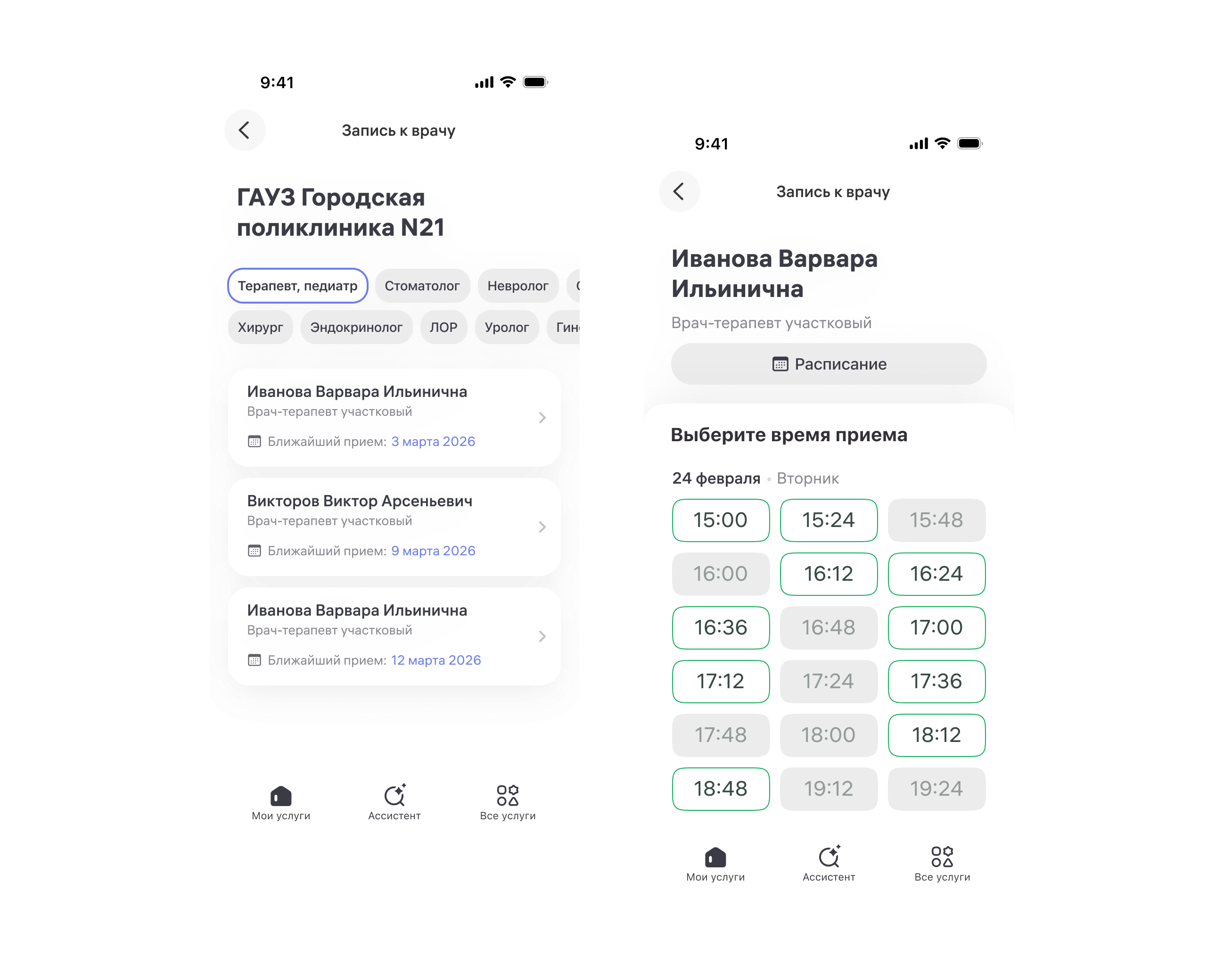 Запись к врачу, расписание, полисы